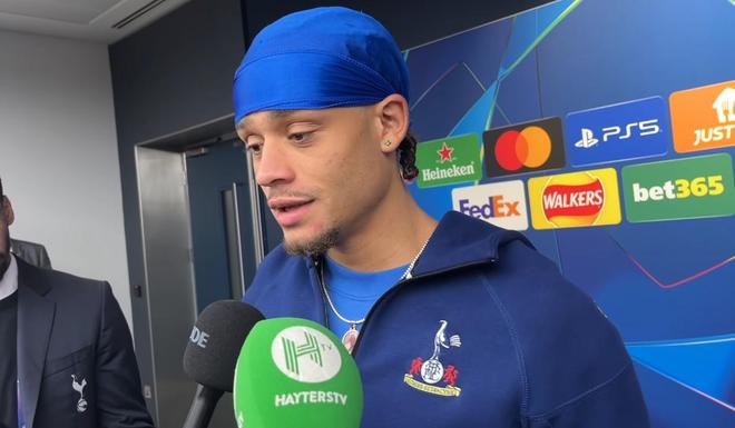 在欧冠主场3-0大胜布拉格斯拉维亚后,热刺中场哈维-西蒙斯在混合采访区接受了采访。